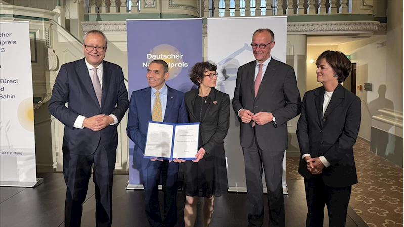 Modern tıbbın iki öncüsü olarak Şahin ve Türeci'ye "2025 Alman Ulusal Ödülü" verildiğini ifade eden Merz, "Sürekli belirsizliğe doğru cesaretle ilerlemenizi onurlandırıyoruz." dedi.