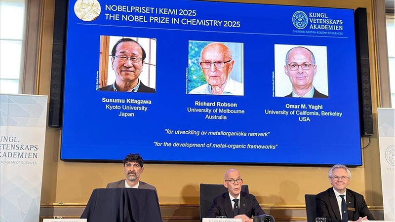 ANKARA (AA) - İsveç Kraliyet Bilimler Akademisi'nde düzenlenen basın toplantısında, 2025 Nobel Kimya Ödülü'nün sahipleri açıklandı.