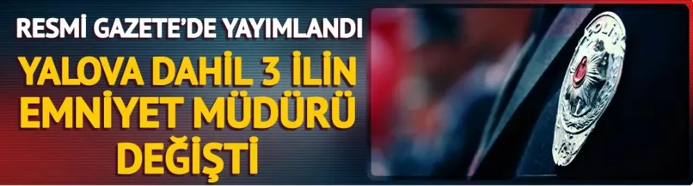 Üç ilin Emniyet Genel Müdürlüğüne ilişkin atama kararları, Resmi Gazete'de yayımlandı. Yalova, Bilecik ve Niğde'nin Emniyet Müdürlüğü görevlerinde yeni atamalar yapıldı.