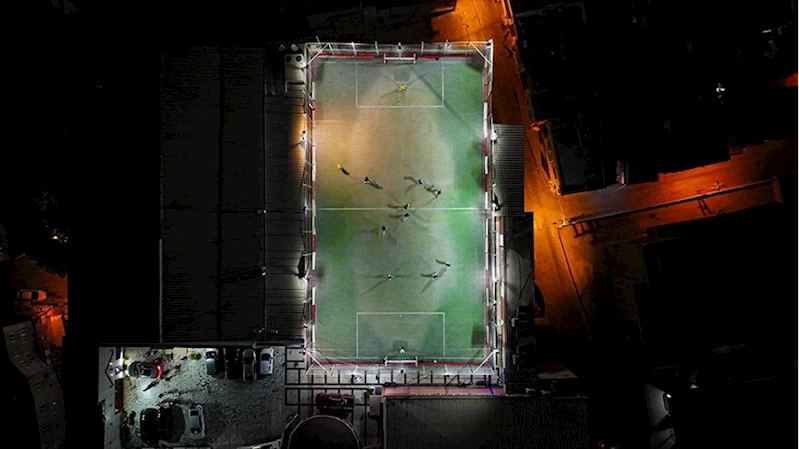 5 katlı binanın çatısında halı saha keyfi