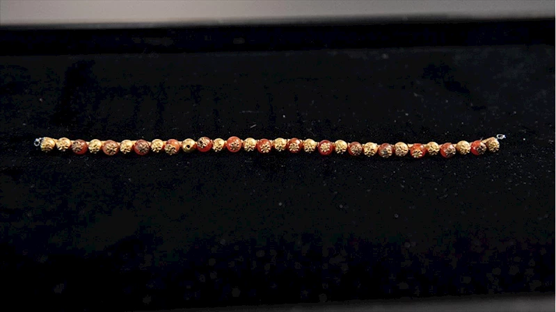 New York Kültür ve Tanıtma Ataşesi Hilal Demirel, AA muhabirine yaptığı açıklamada, kolyenin yaklaşık 20 santimetre uzunluğunda, altın ve karnelyan taşlarından yapılmış nar şeklinde boncuklardan oluştuğu bilgisini paylaştı.