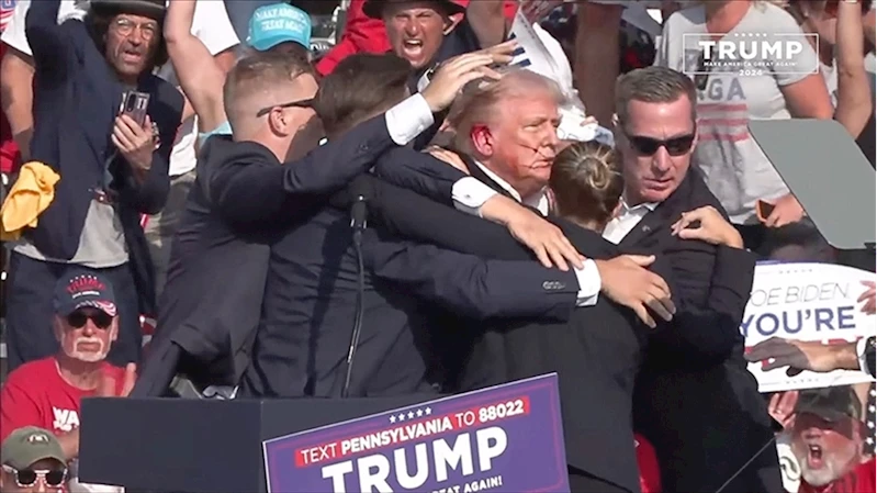 Trump'a suikast girişimiEski ABD Başkanı Donald Trump, 13 Temmuz'da Pensilvanya'da Butler bölgesinde mitingde kürsüden destekçilerine hitap ettiği sırada silahlı saldırıya uğramış, mitinge katılan 1 kişi ölmüş, 2 kişi yaralanmış, ABD Gizli Servisi saldırganın etkisiz hale getirildiğini açıklamıştı.