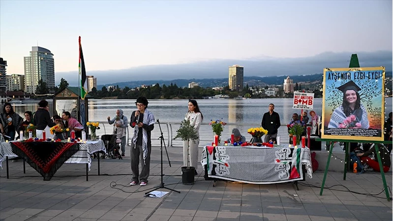 İSTANBUL (AA) - Filistinlilerin çektiği acılara tanıklık etmek ve protesto etmek için gittiği işgal altındaki Batı Şeria'da 6 Eylül'de İsrail askerleri tarafından vurularak öldürülen Eygi için Seattle şehrinin sahil kenarında yüzlerce kişi bir araya geldi.