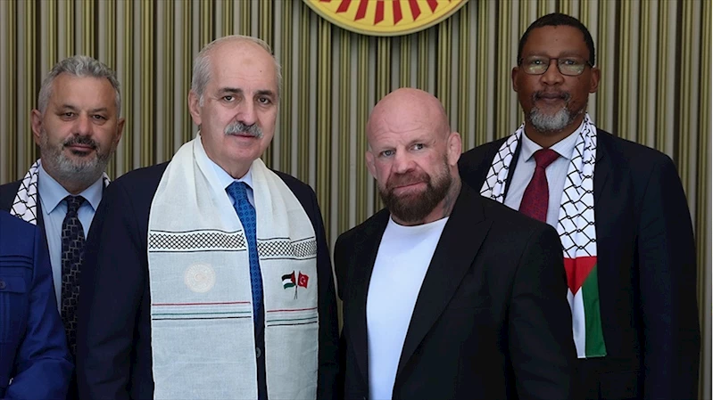 ANKARA (AA) - İsrail'in Filistin'e saldırıları karşısında Filistinlilerin onurlu duruşundan etkilenip İslam dinini tercih eden Monson, Müslüman olduktan sonra ilk cuma namazını TBMM'deki camide kıldı ve namazın ardından TBMM Başkanı Numan Kurtulmuş ile bir araya geldi.