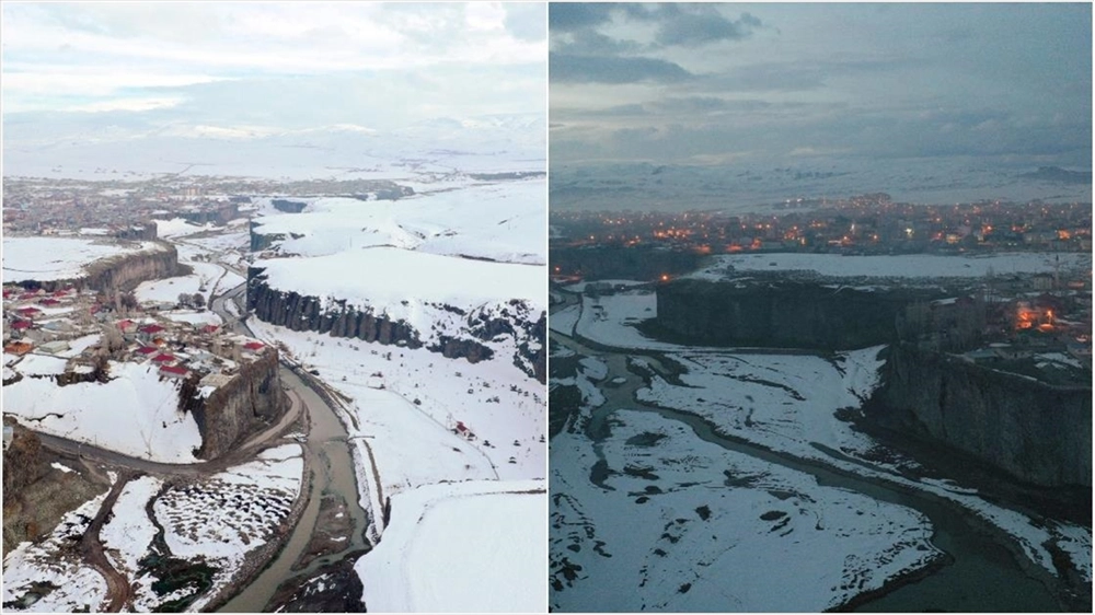 Baharda karla kaplanan Murat Kanyonu gece ve gündüz dronla görüntülendi