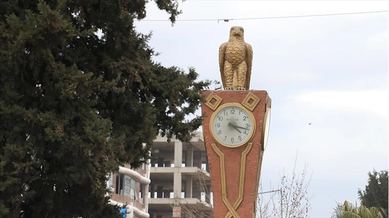 Kahta ilçesindeki tarihi Karakuş Tümülüsü'nün simgesi olan kuşun yer aldığı saat kulesindeki saatler, Kahramanmaraş merkezli ilk depremin yaşandığı 6 Şubat günü saat 04.17'de durdu.