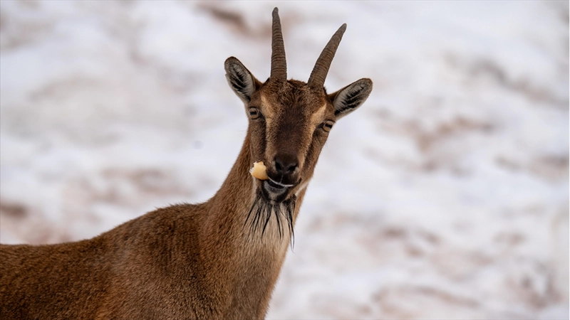 Adıyaman'da yaban keçileri karlı bölgede yiyecek ararken görüntülendi