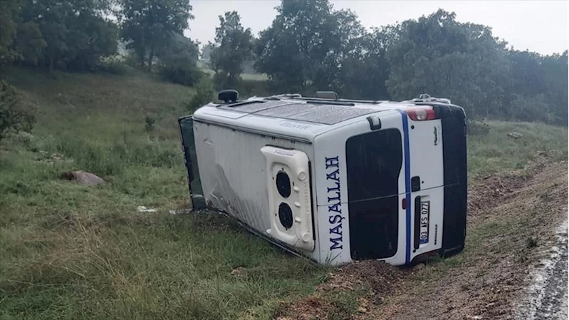 AFYONKARAHİSAR (AA) - Mehmet Aşık idaresindeki 03 AES 077 plakalı sera işçilerini taşıyan minibüs, Yeşilhisar Karayokuş Mevkisi'nde sağanak nedeniyle kayganlaşan yolda sürücünün direksiyon hakimiyetini kaybetmesi sonucu devrildi.