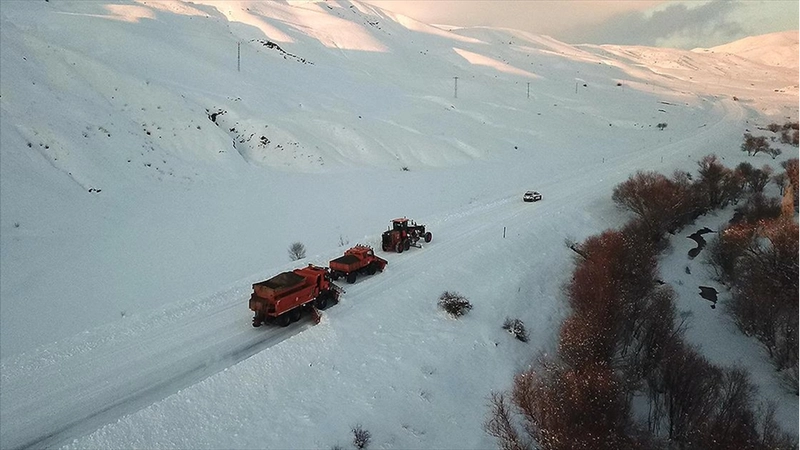 Ağrı ile Kars'ın Kağızman ilçesini birbirine bağlayan ve son günlerde etkili olan kar yağışı nedeniyle ulaşıma kapanan kara yolunda çalışma başlatıldı.