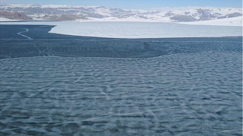 Ağrı'da Yazıcı Barajı'nın buzla kaplı yüzeyi çözülüyor