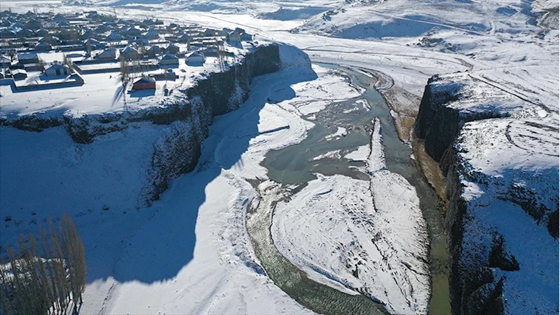 Ağrı'daki Murat Kanyonu ve çevresi beyaza büründü