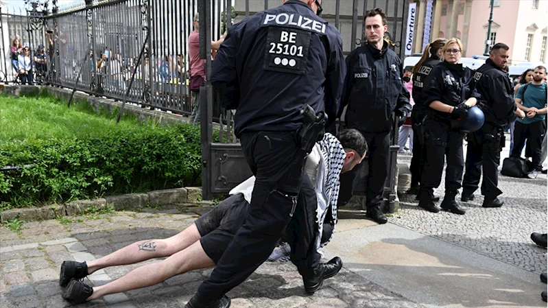 Yoğun güvenlik önlemi alan Berlin polisi, 3 saat bekledikten sonra gruba müdahale ederek Filistin destekçilerini üniversite bahçesinden çıkarttı.