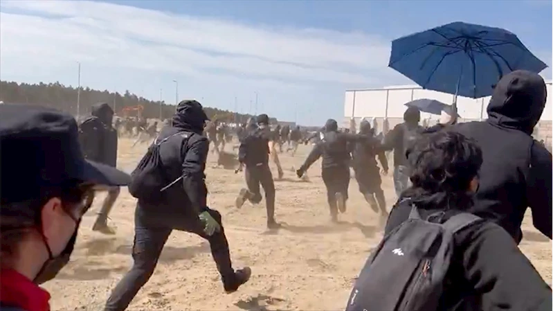 BERLIN (AA) - Bölge polisinden yapılan açıklamaya göre, Tesla'nın Avrupa'daki ilk fabrikası "Giga Berlin" yakınlarında toplanan protestocular, polis barikatını aşarak fabrikanın bulunduğu alana ulaştı.