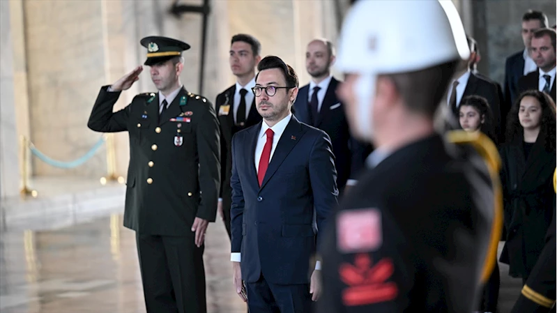 ANKARA (AA) - Genel Müdür Yardımcıları Yusuf Özhan ve Oğuz Enis Peru ile AA çalışanlarından oluşan heyetle Anıtkabir'e gelen Karagöz, kırmızı ve beyaz karanfillerden oluşan, üzerinde "Anadolu Ajansı" yazılı çelengi Gazi Mustafa Kemal Atatürk'ün mozolesine bıraktı.