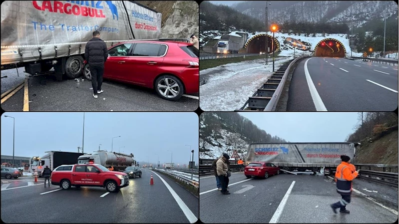 Anadolu Otoyolu'nun Bolu kesiminde makaslayan tıra otomobilin çarptığı kaza ulaşımı aksattı