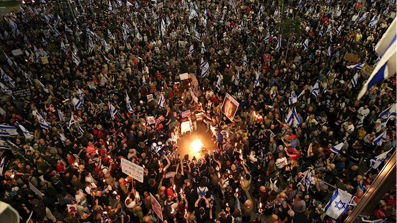 İsrail'de binlerce kişi hemen hemen her gün, Gazze'ye saldırılar devam ederken Netanyahu hükümetinin istifası, erken seçim ve İsrailli esirlerin evlerine geri getirilmesi talebiyle protesto düzenliyor.