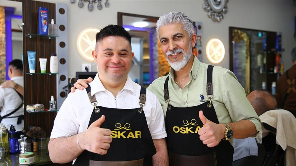 Down sendromlu genç çalıştığı berber salonuna neşe katıyor