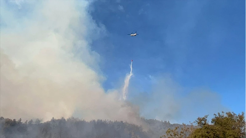 Güzören Mahallesi'ndeki ormanlık alanda çıkan yangına 2 helikopter, 3 uçak, 18 arazöz, 10 su ikmal aracı, 1 dozer, 1 greyder ve çok sayıda orman işçisiyle müdahale edildi.