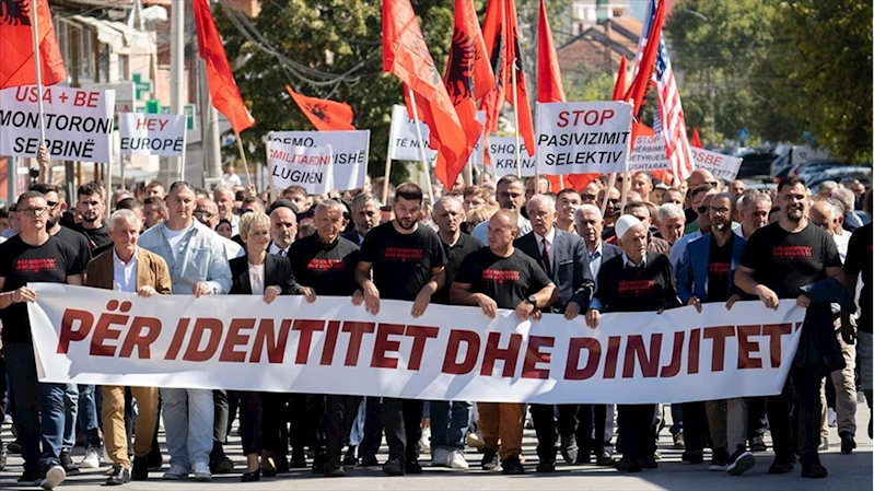 PRİŞTİNE/ANKARA (AA) - Sırbistan'da yaşayan Arnavutlara yönelik yapılan hak ihlallerine karşı düzenlenen gösteriye, Sırbistan Meclisinin tek Arnavut Milletvekili Shaip Kamberi, Preşevo Belediye Başkanı Ardita Sinani ile "Preşevo Vadisi" olarak anılan bölgeden yüzlerce Arnavut katıldı.