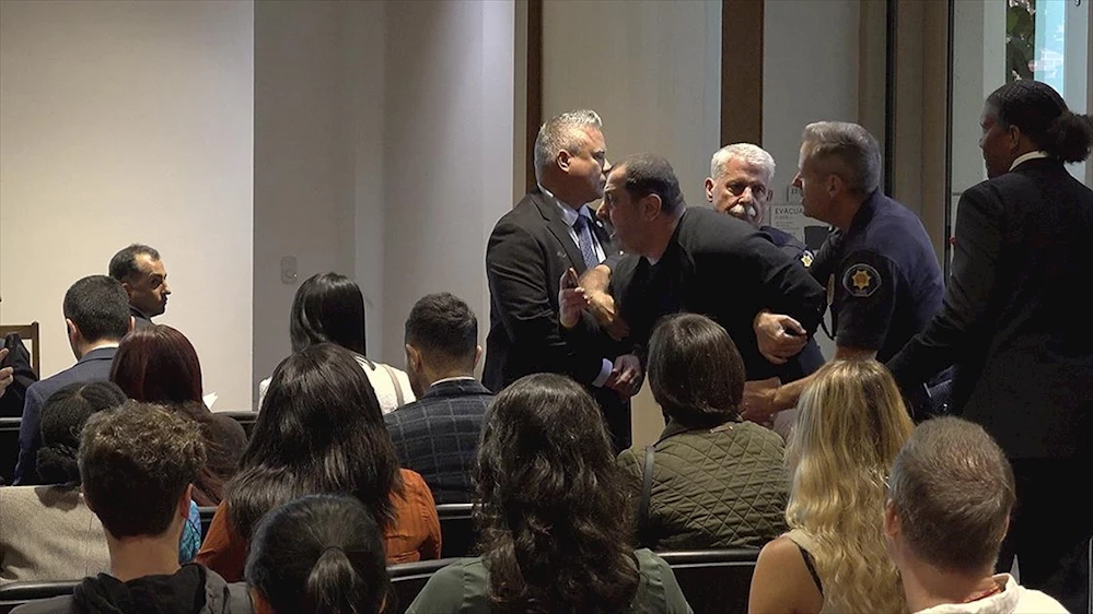 ABD'de Türkiye konulu konferansı provoke etmeye çalışan Ermeni protestoculara polis müdahale etti