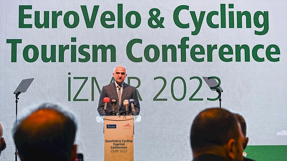İZMIR (AA) - Kültür ve Turizm Bakanı Mehmet Nuri Ersoy, Avrupa Bisikletçiler Federasyonu, Kültür ve Turizm Bakanlığı ile Türkiye Turizm Tanıtım ve Geliştirme Ajansı ev sahipliğinde İzmir Büyükşehir Belediyesi ve yerel paydaşların destekleriyle İzmir'de bir otelde düzenlenen EuroVelo (Avrupa Bisiklet Rotaları Ağı) Bisiklet Turizmi Konferansı'na katıldı.