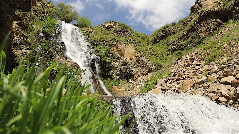 Türkiye'de kışın en çetin geçtiği illerden Kars'taki Susuz Şelalesi, karların erimesi ve ilkbaharda etkili olan yağmurlarla coşkun akan suyuyla ziyaretçilerini bekliyor.