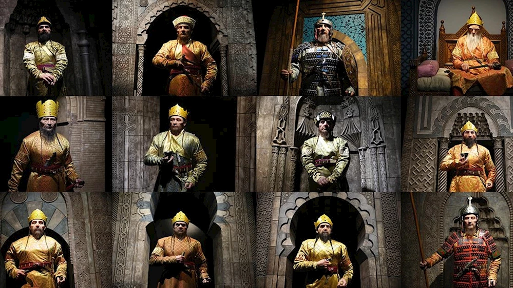 Tarihi minyatürler dikkate alınarak hazırlanan aslına uygun kıyafetlerle, Anadolu Selçuklu Devleti'nin mimari zenginliğini yansıtan taç kapılar önünde ziyaretçilerini karşılayan hükümdarlar, yüz ifadeleri, saçları, sakalları, duruşları ve bakışlarıyla dikkati çekiyor.