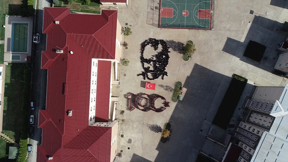 Ordu'da öğrenciler, Türkiye Cumhuriyeti'nin kurucusu Mustafa Kemal Atatürk'ün silüeti ile 100. yıl koreografisi oluşturdu.