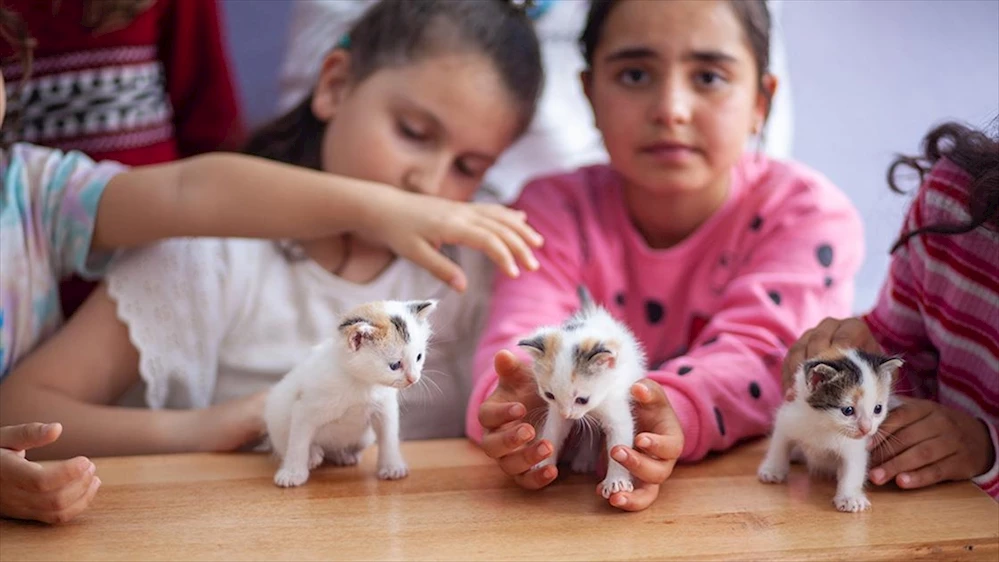 Çorum'un Sungurlu ilçesinde Aşağı Fındıklı Köyü İlkokulunun 3. sınıf öğrencilerinin 'Annemesu, Elimesu, Tiremesu ve Taşımasu' isimlerini verdiği 4 kedi, sınıfın bir köşesine konulan karton kutuya yerleştirildi.