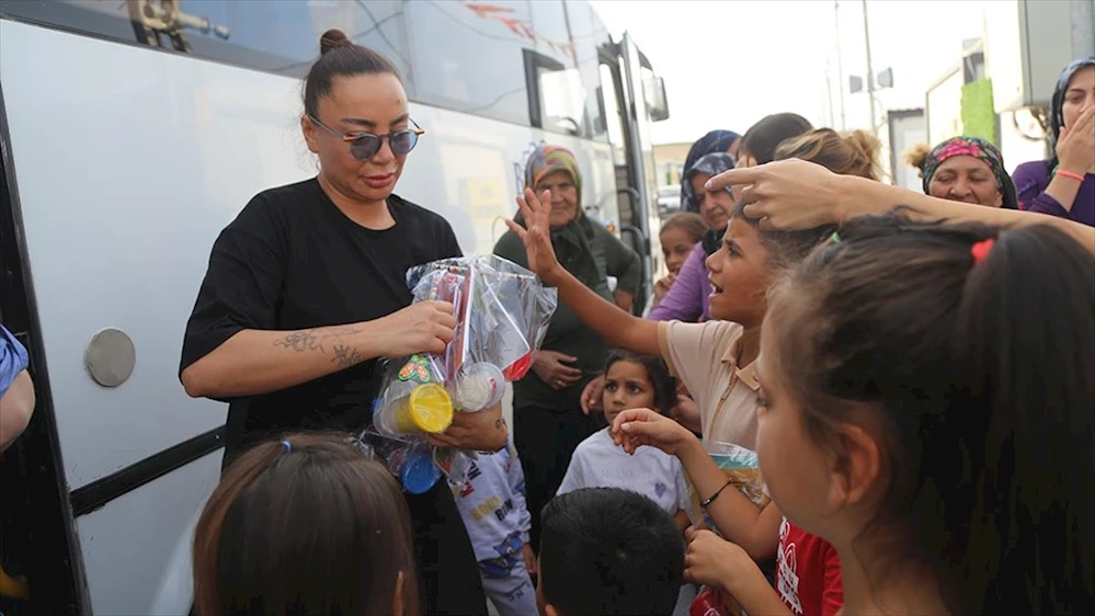 İletişim Başkanlığı koordinesinde 6 Şubat'ta meydana gelen depremlerin ardından büyük yıkımın yaşandığı Hatay'a gelen şarkıcı Züleyha Ortak ve şef Suna Aydın, konteyner kentte kalan depremzedelerle buluşarak çeşitli hediyeler ver