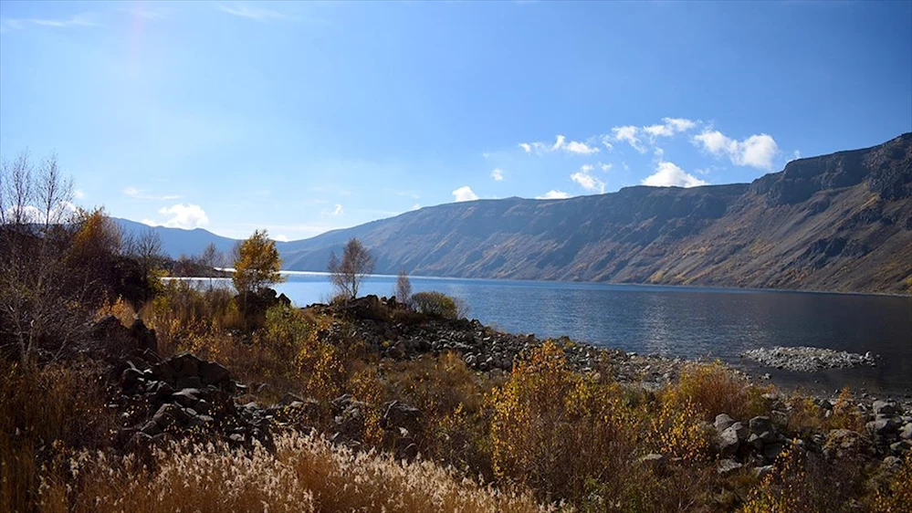 Bitlis'in Tatvan ilçesindeki Nemrut Krater Gölü, sonbaharda da yerli ve yabancı turistlere, doğaseverlere ve fotoğraf tutkunlarına ev sahipliği yapıyor.