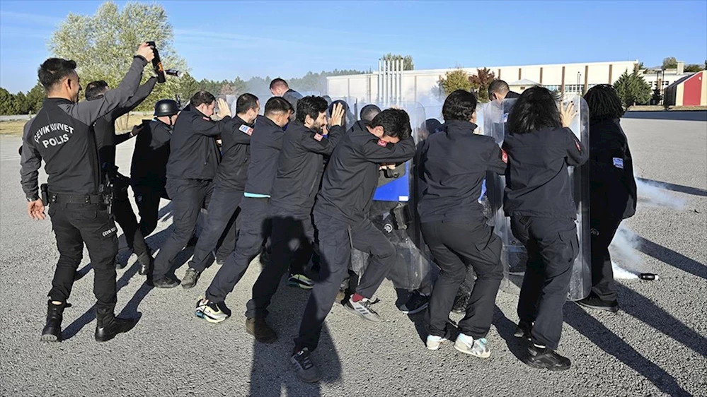 Savaş, afet ve olağanüstü hallerde görev yapacak operasyonel muhabirler yetiştirmek amacıyla düzenlenen programda kursiyerlere, toplumsal olaylarda meydana gelebilecek durumlar, gerçeğini aratmayacak şekilde yaşatıldı. Toplumsal olaylar üzerine Polis Akademisi Başkanlığında verilen pratik eğitimde, ekipler basınçlı su sıktı ve biber gazı attı.