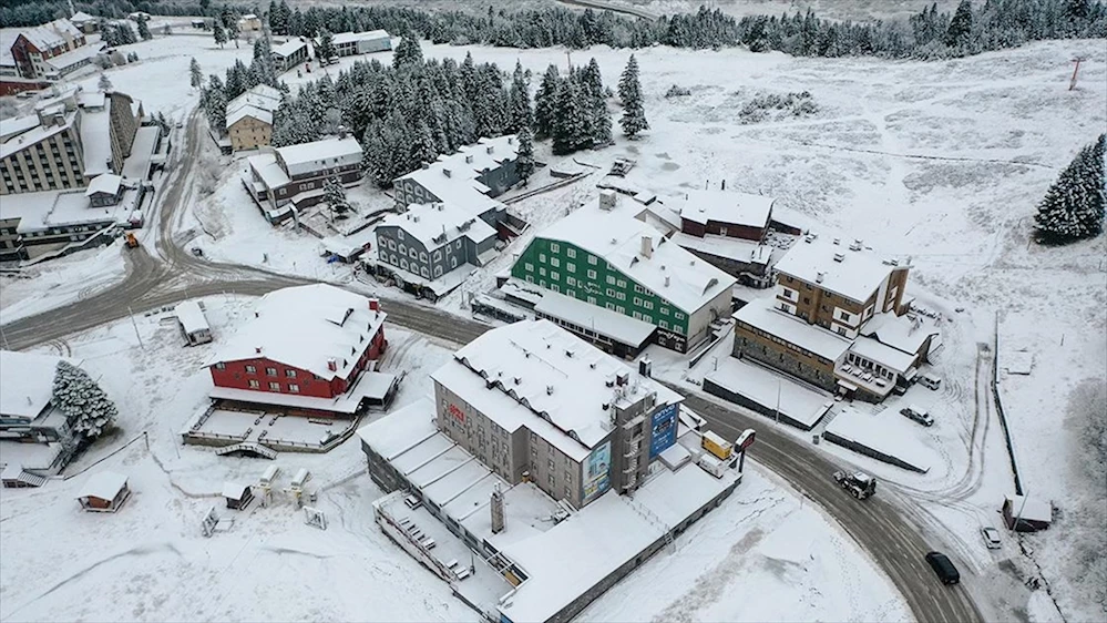 Her yıl yerli ve yabancı turistin ilgi gösterdiği Uludağ'da yağış nedeniyle Oteller Bölgesi ve kayak pistleri karla kaplandı.