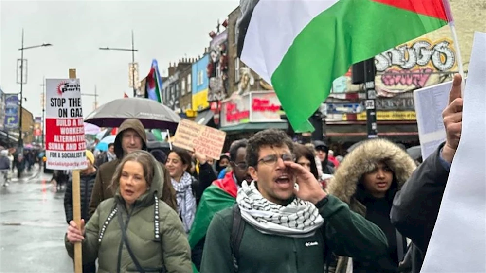 Protestocular ayrıca, İngiltere Başbakanı Rishi Sunak ile ana muhalefetteki İşçi Partisi lideri Keir Starmer başta olmak üzere siyasi liderlerin, İsrail'in savaş suçlarına ortak olmaktan derhal vazgeçmelerini talep etti.