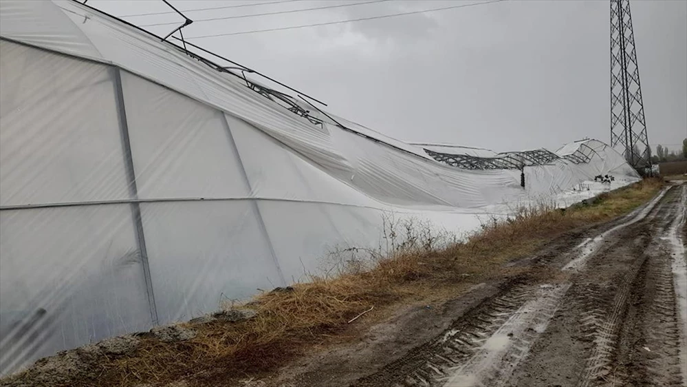 Konya'nın Seydişehir ilçesinde etkili olan fırtına bazı binaların çatısının uçmasına ve çiçek seralarının zarar görmesine neden oldu.