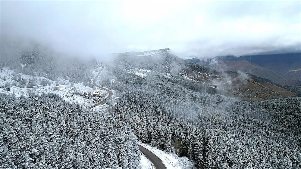 Odayboğazı ve Isırganlık mevkilerindeki ormanlık alanlarda sonbaharın renk tonları güzel görüntüler sunarken bin 450 rakımlı Yaralıgöz Geçidi'nde ise ormanlar beyaz örtüyle buluştu.