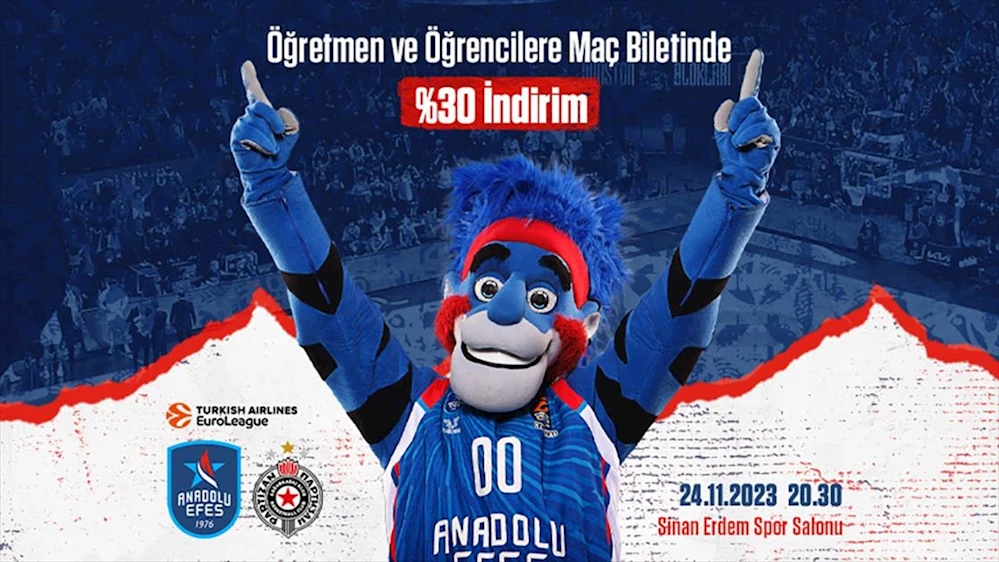 Anadolu Efes, 24 Kasım Öğretmenler Günü'nde oynayacağı Partizan maçında öğretmen ve öğrencilere indirimli bilet satacak.