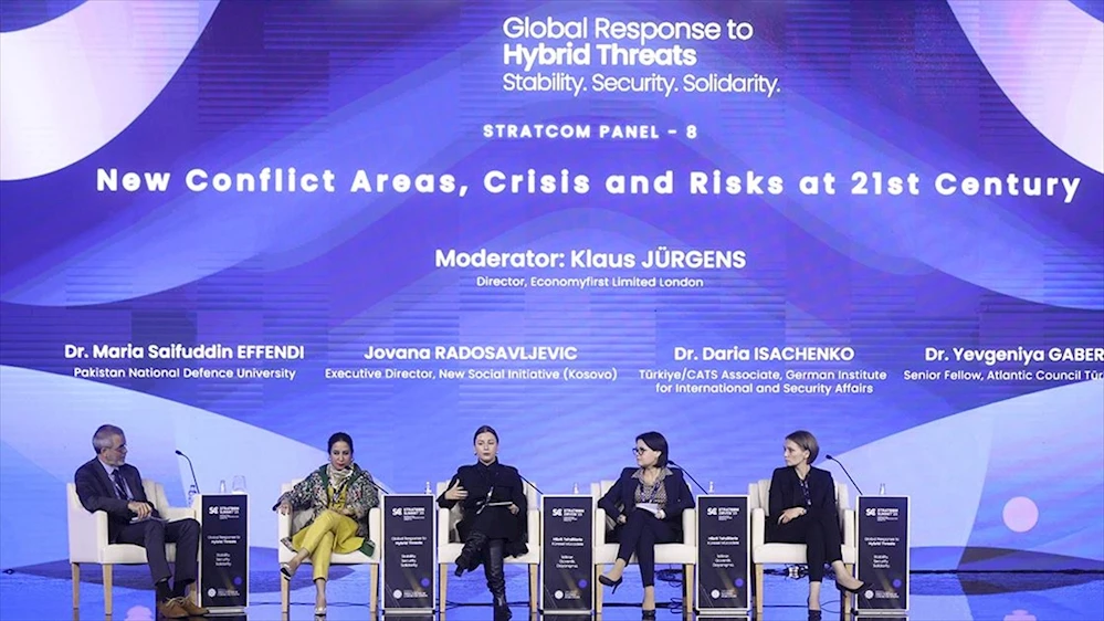 ANKARA/İSTANBUL (AA) - Economyfirst Limited London Direktörü Klaus Jürgens'in moderatörlüğündeki panelde Pakistan Milli Savunma Üniversitesi Barış ve Çatışma Çalışmaları bölümünde Dr. Maria Saifuddin Effendi, Kosova New Social Initiative İcra Direktörü Jovana Radosavljevic, Alman Uluslararası ve Güvenlik İlişkileri Enstitüsünden Türkiye/CATS Araştırmacısı Dr. Daria Isachenko ve Atlantic Council Türkiye Kıdemli Üyesi Dr. Yevgeniya Gaber birer konuşma yaptı.