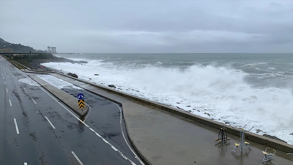 Dün akşamdan itibaren fırtına ve yağışın yaşamı olumsuz etkilediği kentte, Sürmene ilçesinde denizde dev dalgalar oluştu.