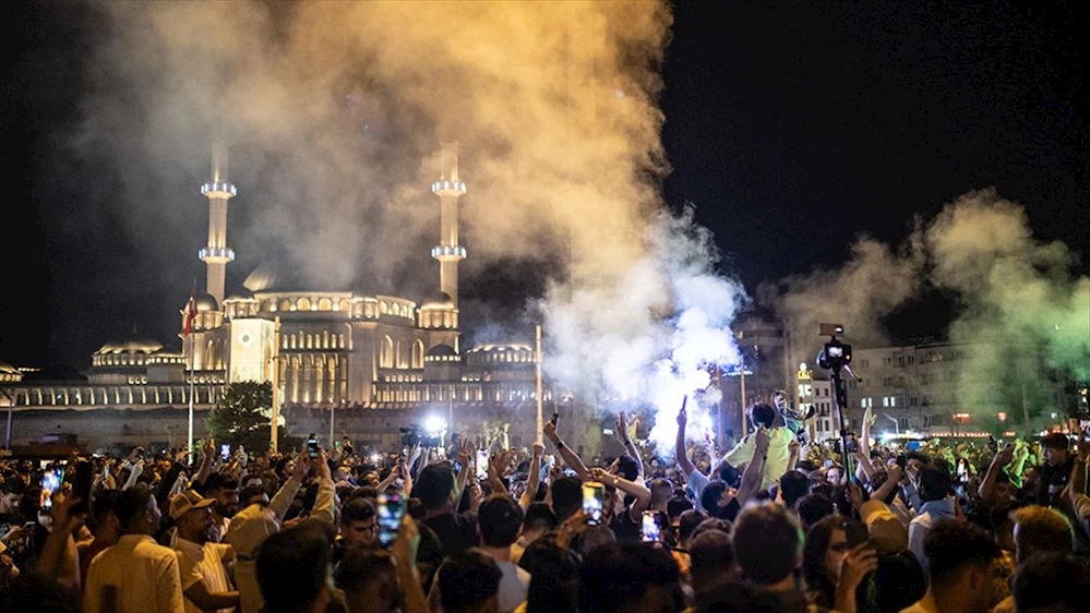 UEFA Şampiyonlar Ligi finalinde İtalya ekibi Inter'i 1-0 mağlup ederek kupanın sahibi olan İngiltere temsilcisi Manchester City'yi destekleyen futbolseverler, Taksim Meydanı'nda şampiyonluğu kutladı.