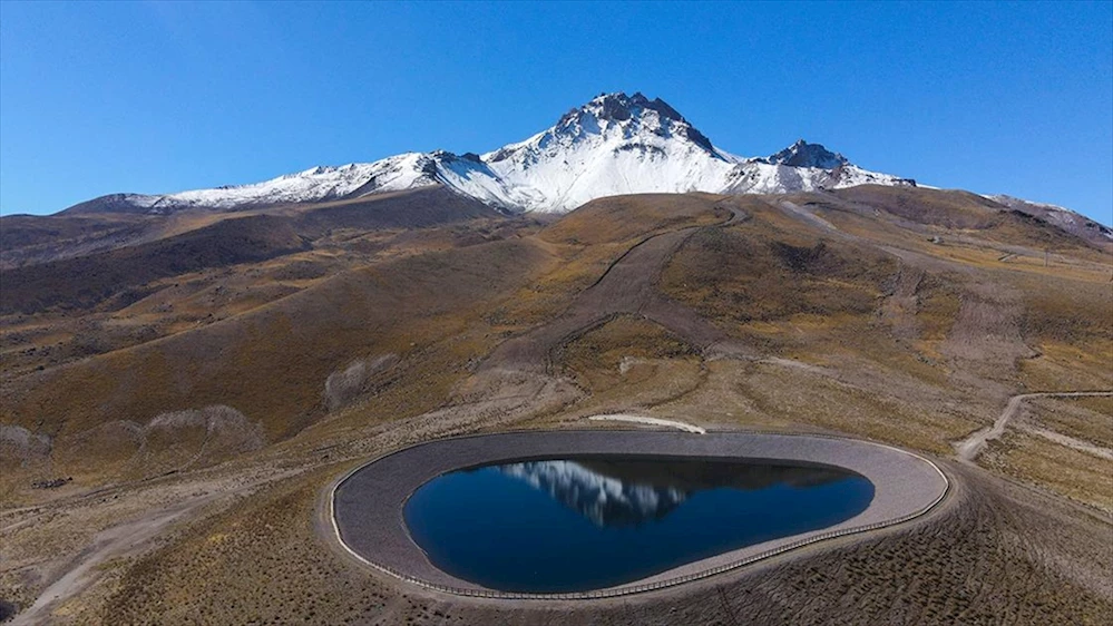 İç Anadolu'nun 3 bin 917 rakımlı en yüksek dağı Erciyes'te iki gölette biriken kar suyu, suni karlama üniteleriyle kışın kayak pistlerine geri dönüyor.