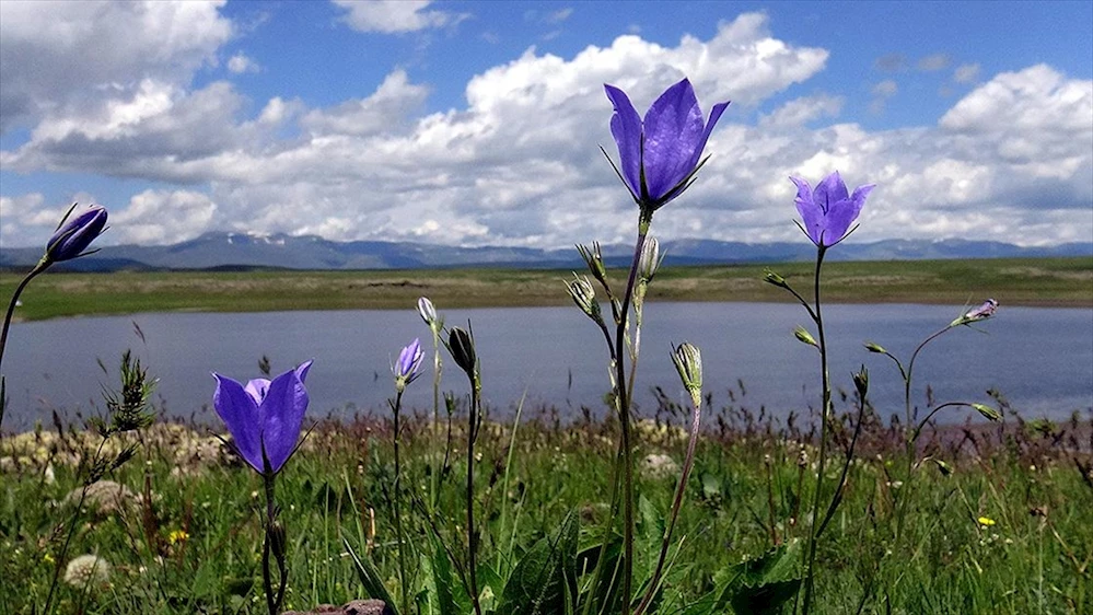 Sarıkamış ilçesindeki Asboğa Gölü, yağmurların ardından rengarenk çiçekler ve göçmen kuşlarla şenlendi.