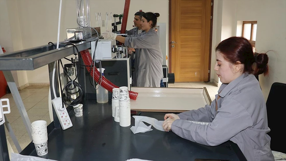 Üniversite öğrencilerinin de arasında olduğu 8 engelli, istihdam edildikleri merkezde günlük yaklaşık 300 bin parça peçete, ıslak mendil ve karton bardak üretiyor.