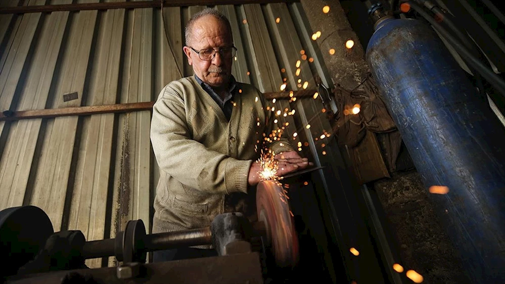 Mahmut Kuloğlu, AA muhabirine, demirciliğe babasının hastalanıp mesleği bırakmasıyla başladığını söyledi.