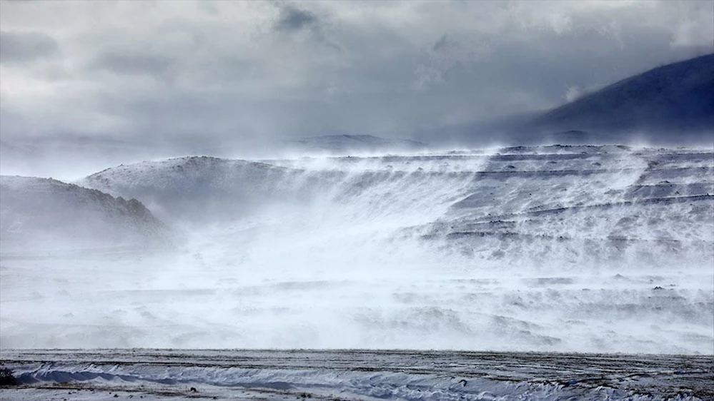 Iğdır'daki Aras Dağları'nda, tipi ve fırtına sonucu karların hareket etmesiyle oluşan 'kar şelalesi' görüntülendi.