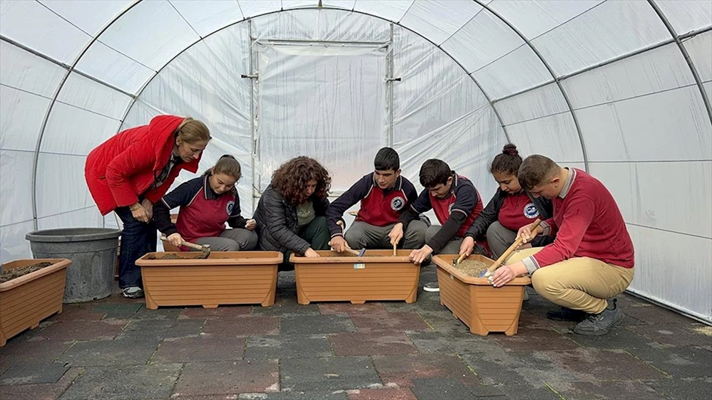 KASTAMONU (AA) - İhsan Ozanoğlu Özel Eğitim Meslek Okulu Müdür Yardımcısı Hatice Yalçın ve El Sanatları Öğretmeni Türkan Özdemir öncülüğünde 2022 yılında eTwinning 'Çiçeklerin Dili' projesi hazırlandı. Projenin başarıya ulaşması üzerine okul tarafından 'Benim Bahçem Benim Dünyam' projesi hayata geçirildi. Kastamonu Belediyesi tarafından okul bahçesine kurulan serada ilk olarak özel bireyler, saksılara çeşitli bitkiler dikti.