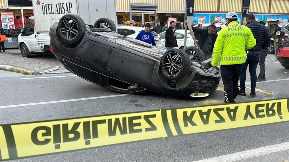 Hürriyet Bulvarı'nda başka bir araca çarpan otomobil devrildi.