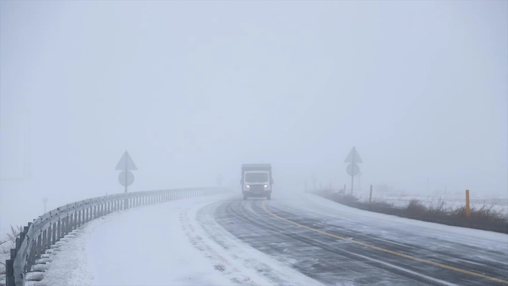 Arpaçay-Çıldır kara yolunda da etkili olan kar nedeniyle görüş mesafesi düştü.