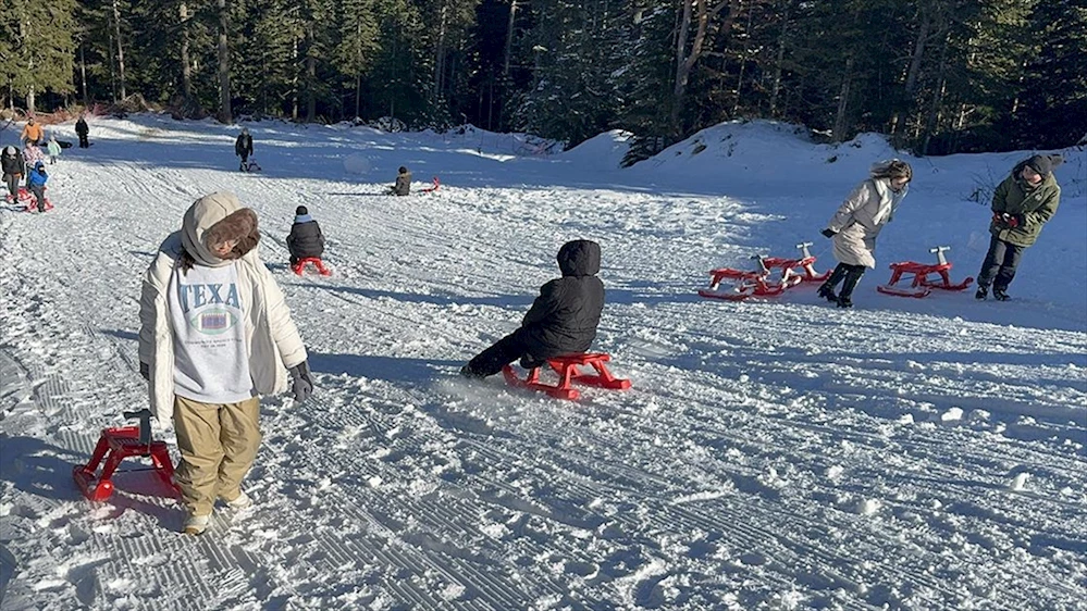 Yurduntepe, kızakla kaymak isteyen küçük ziyaretçilerine de eğlenceli kış tatili imkanı sunuyor.