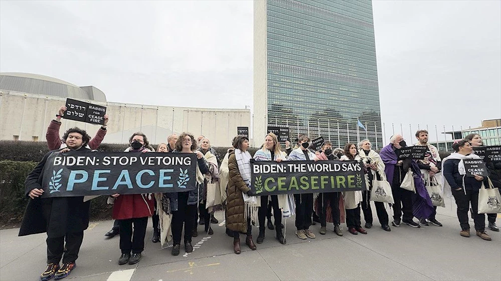 Grup, 'Biden'a tüm dünyanın (Gazze'de) ateşkes istediğini hatırlatmak için BM'deyiz. Barışı veto etmekten vazgeçin. Bu şiddetin askeri çözümü yoktur. BM, şiddeti durdurmaya yönelik anlamlı diplomatik eylemin gerçekleştirilebileceği yerdir.' ifadelerini kullandı.